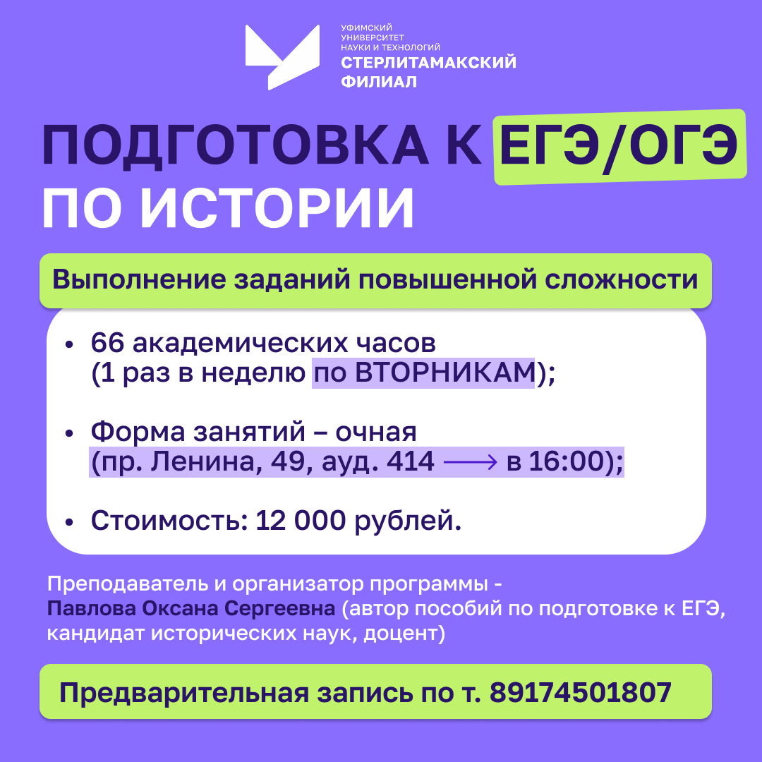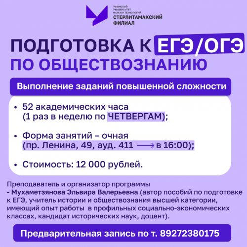 Стерлитамакский филиал УУНиТ организует дополнительные общеразвивающие программы по подготовке обучающихся к ОГЭ/ЕГЭ по следующим предметам: