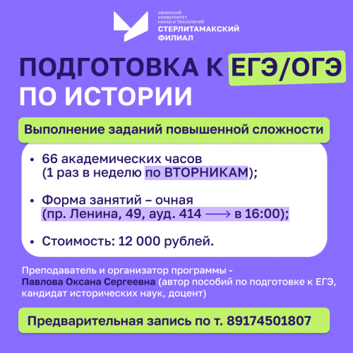 Ждем всех желающих! Просьба к обучающимся - обращаться непосредственно к преподавателям курсов или в деканат исторического факультета СФ УУНиТ (каб. 412).