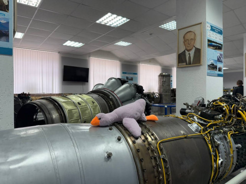 Наш пернатый друг, символ студенческой жизни СФ УУНиТ, посетил легендарное предприятие — ПАО ОДК-УМПО.