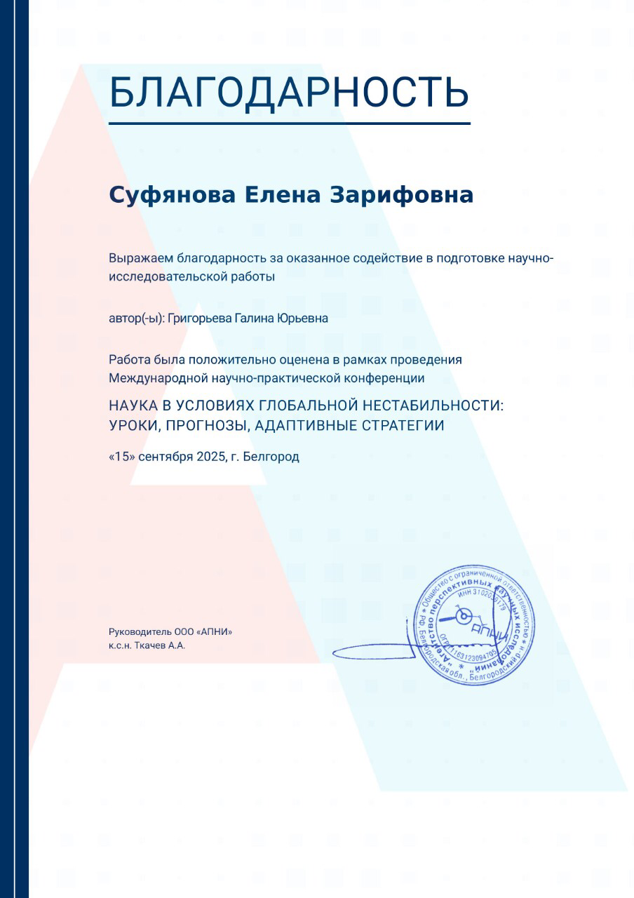 15 сентября 2025 года в научных кругах прошло значимое событие — Международная конференция "Наука в условиях глобальной нестабильности: уроки, прогнозы, адаптивные стратегии" в г. Белгород. Форум собрал ведущих исследователей и практиков, которые обсудили актуальные вопросы и проблемы, вызванные современными вызовами и изменениями в глобальной среде.