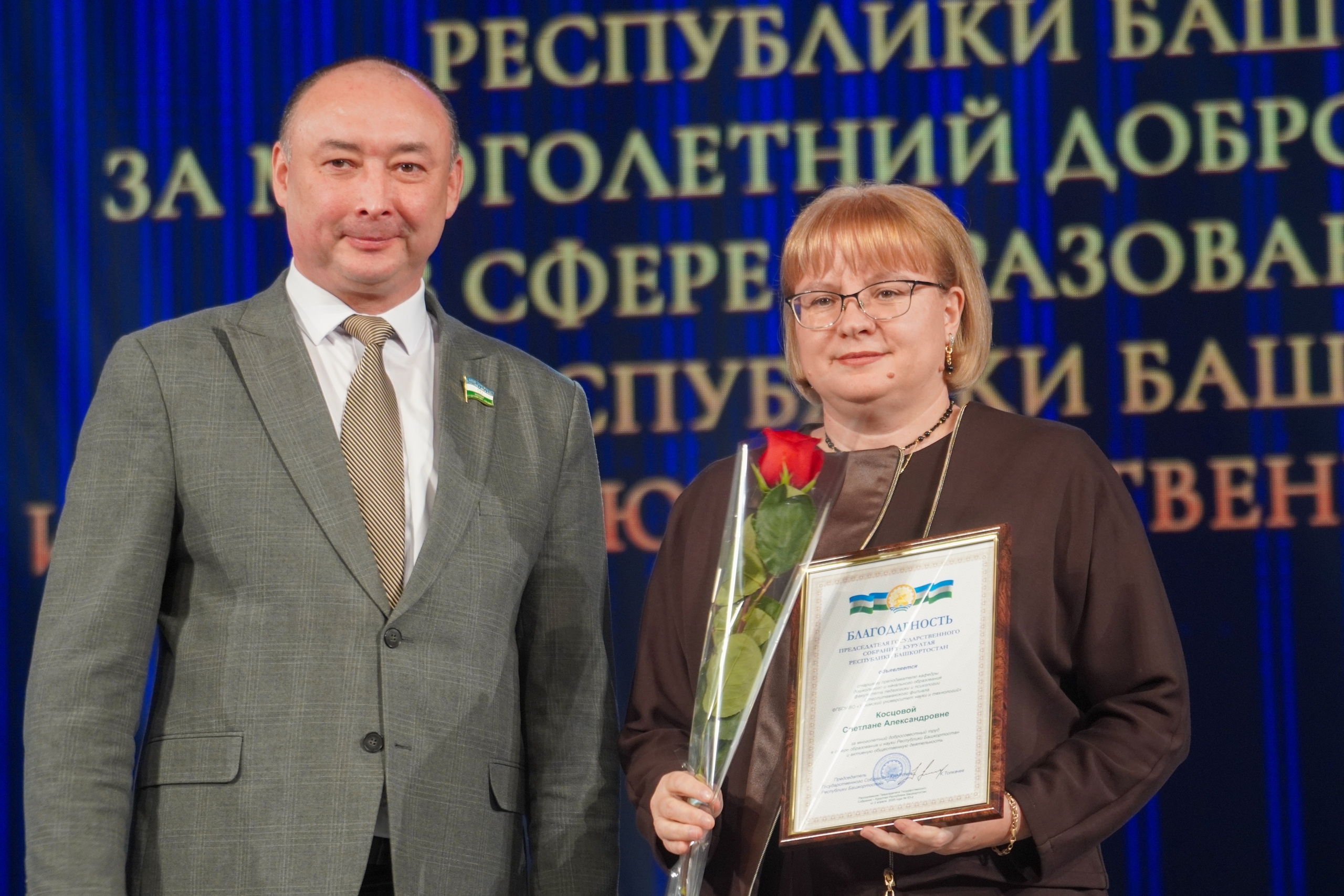 1. Косцовой Светлане Александровне, старшему преподавателю кафедры дошкольного и начального образования, вручена благодарность Председателя Государственного Собрания – Курултая Республики Башкортостан за многолетний добросовестный труд в сфере образования и науки Республики Башкортостан и активную общественную деятельность.