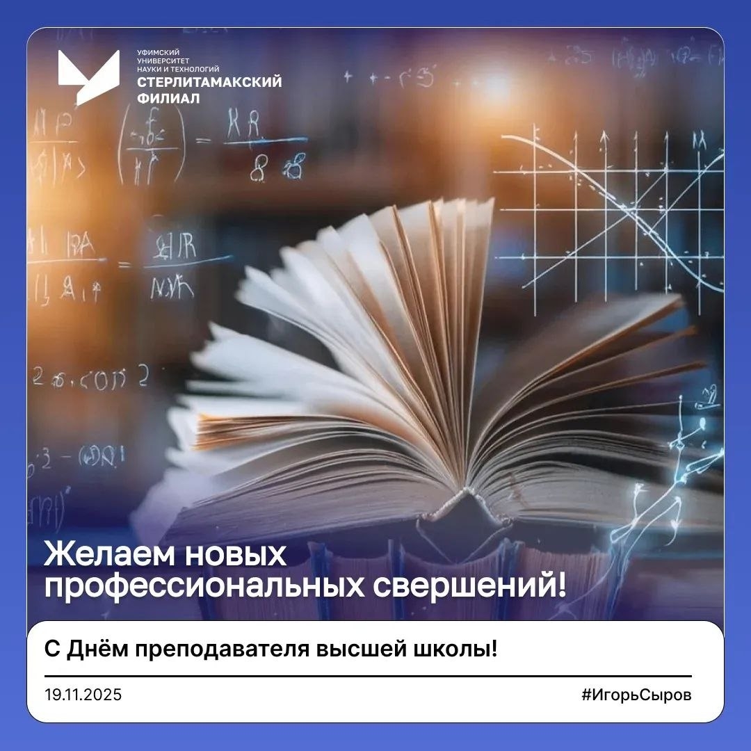 От имени руководства Стерлитамакского филиала Уфимского университета науки и технологий я искренне поздравляю вас с нашим общим профессиональным праздником — Днём преподавателя высшей школы!