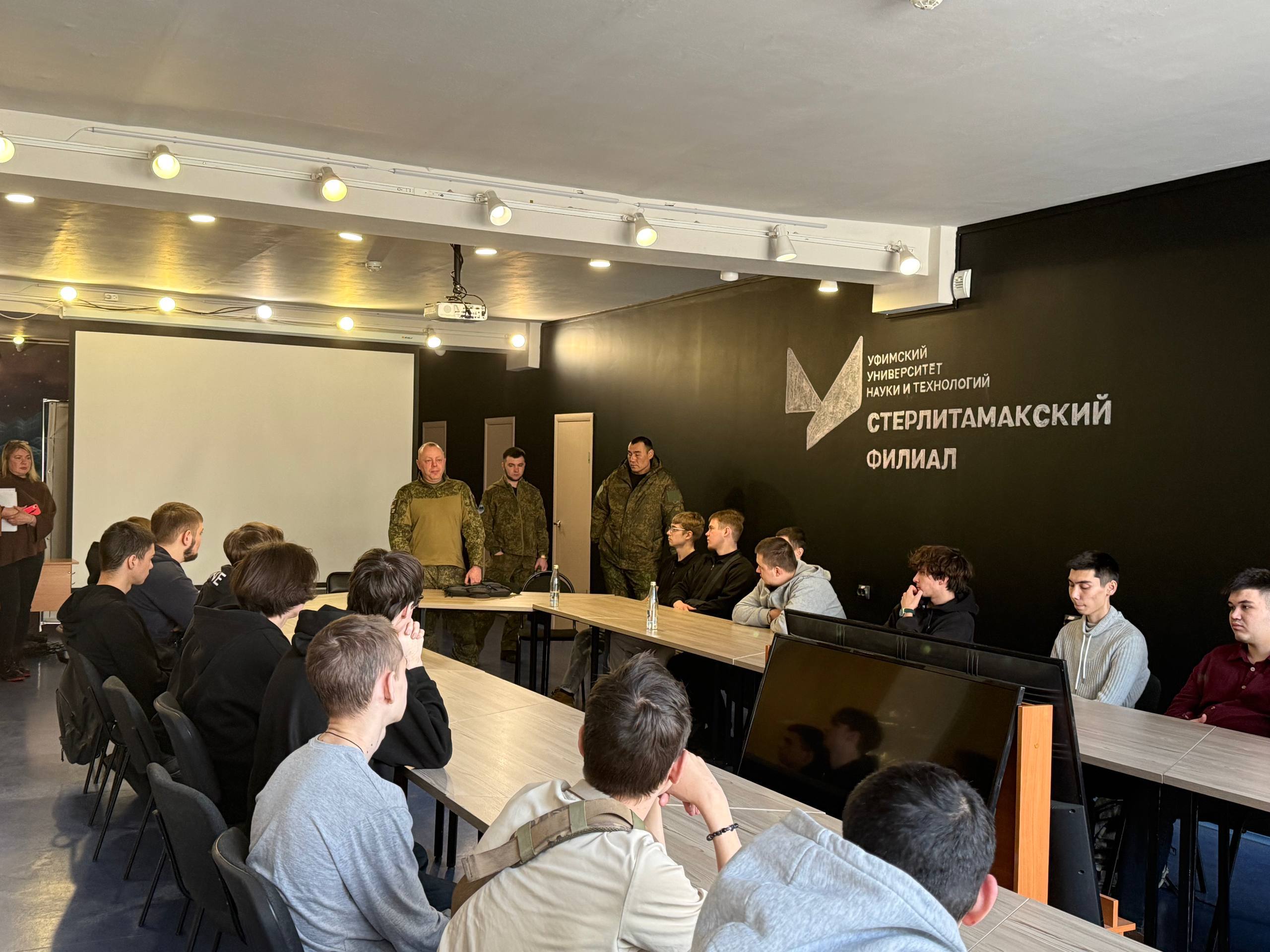 Сегодня Стерлитамакский филиал Уфимского университета науки и технологий стал площадкой для важного профориентационного мероприятия. Студенты вуза и колледжа встретились с экспертами, чтобы из первых уст узнать о службе в Войсках беспилотных систем и перспективах развития этой высокотехнологичной отрасли в рядах Вооруженных Сил РФ.