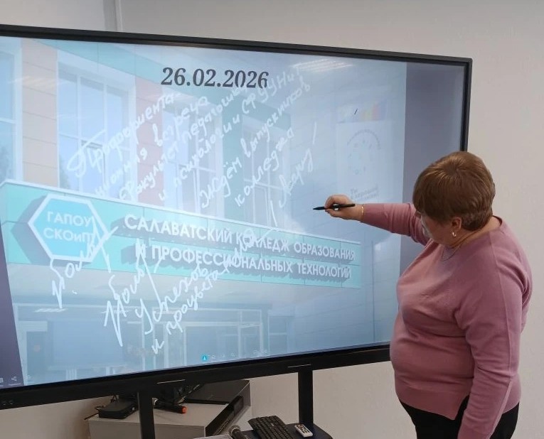 Е.В. Головнева и Л.Н. Уварова в музее колледжа оставили в электронной форме добрые пожелания дальнейшей продуктивной работы, творческих успехов и процветания Салаватскому колледжу образования и профессиональных технологий на интерактивной доске.