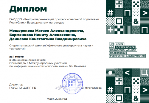 Стерлитамакский филиал УУНиТ в очередной раз подтверждает статус кузницы высококлассных специалистов. Мы с гордостью объявляем: наша команда стала триумфатором Олимпиады с международным участием по информационным технологиям имени Б.И. Рамеева.