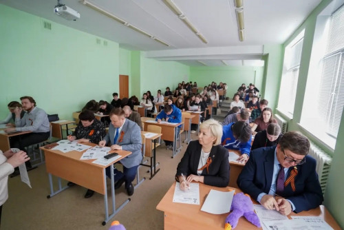 Перед началом испытаний к присутствующим обратился заместитель директора по молодежной политике и воспитательной работе, кандидат физико-математических наук, доцент Александр Анатольевич Потапов. Он отметил, что проведение акции на базе филиала является предметом особой гордости: «Для нас огромная гордость, что «Диктант Победы» регулярно проходит на нашей площадке. Это не просто проверка знаний, а возможность открыть для себя новые страницы истории Великой Отечественной войны. Понятие «Победа» многогранно: сегодня это и наши личные достижения в образовании, и прорывы в большой науке. Как физику, мне особенно отрадно, что в 2026 году запускается сверхпроводящий коллайдер NICA — символ нашего прогресса. Но чтобы добиваться новых высот сегодня, мы должны свято помнить о подвиге наших дедов и прадедов. Именно их Великая Победа дала нам возможность учиться, созидать и идти вперед».